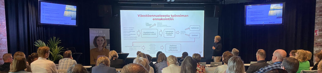 Seminaarin pääpuheenvuorossa Rasmus Aro MDI:ltä, esitteli työmarkkinoiden ennakoitua kehitystä Pohjois-Savossa.